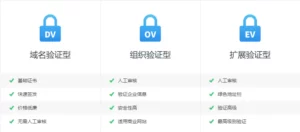 分为三种类型,域名型SSL证书(DV SSL)、企业型SSL证书(OVSSL)、增强型SSL证书(EVSSL)
